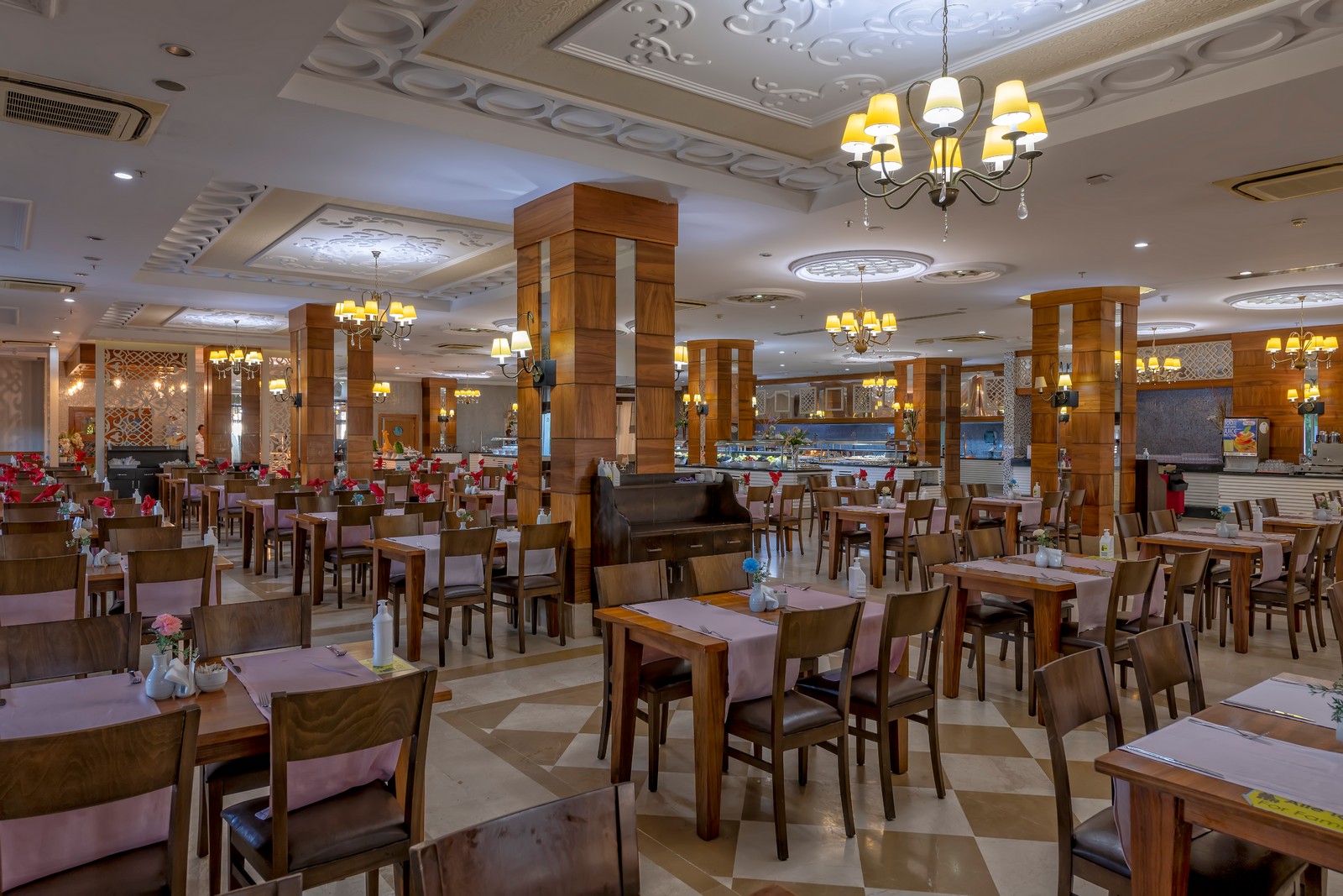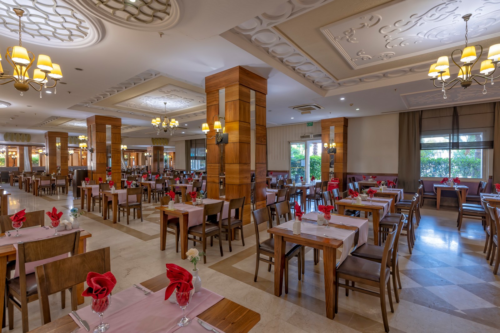 Unutamayacağınız tatları ve lezzetleri bir arada bulmayı, yeni lezzetleri keşfetmeyi sevenlerdenseniz açık büfemizde size, uluslararası ve Türk mutfağımızın birbirinden güzel lezzetlerini sunuyoruz. Sabah kahvaltısı, öğle yemeği ve akşam yemeği için restoranımızda bekleniyorsunuz. Diyet köşesinde klasik monotonluğu kırarak, günün her öğününde farklı çeşitler sunuyoruz. Haftada belirli günlerde özel temalı geceler siz, değerli misafirlerimizin memnuniyeti için düşünülmüştür.